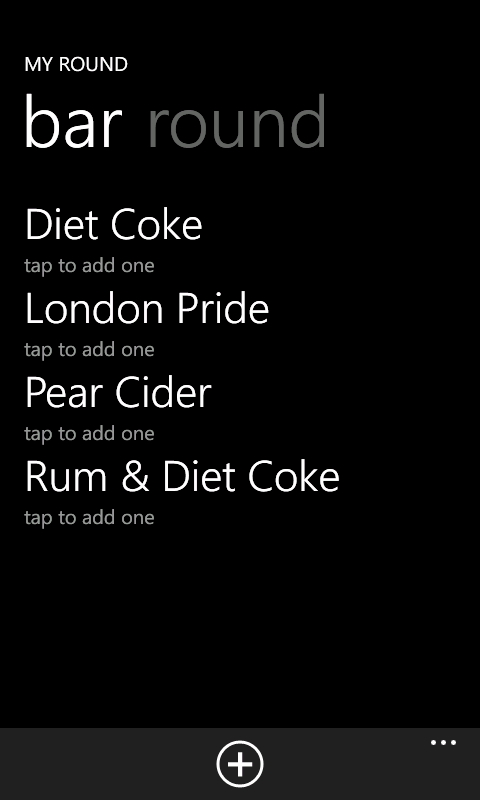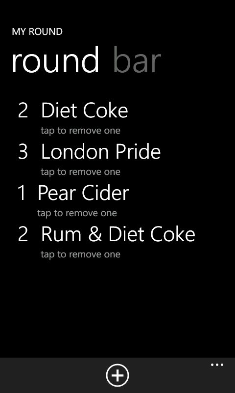 Once a item is in the “Bar” list, just tap it to add it to the round. And on the round page, tap it to remove one of that item (or remove the item completely if there is only one left).